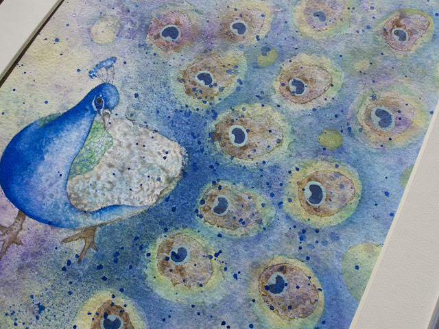 Here are a few views of my latest peacock. I'm going to list him in my Etsy shop, as I've sold a few of my bigger paintings on there recently. I feel very appreciated by my US customers :-)